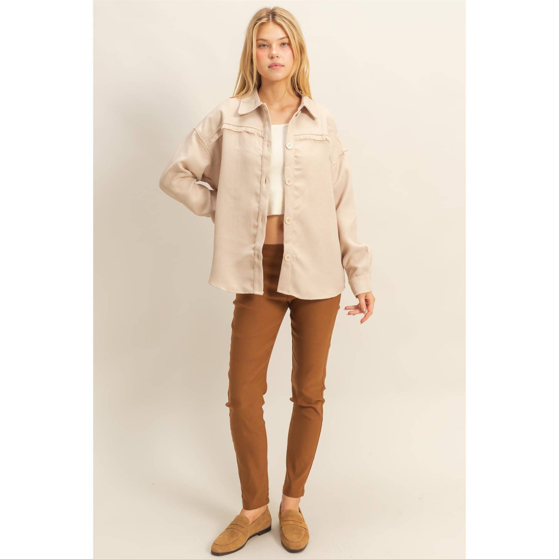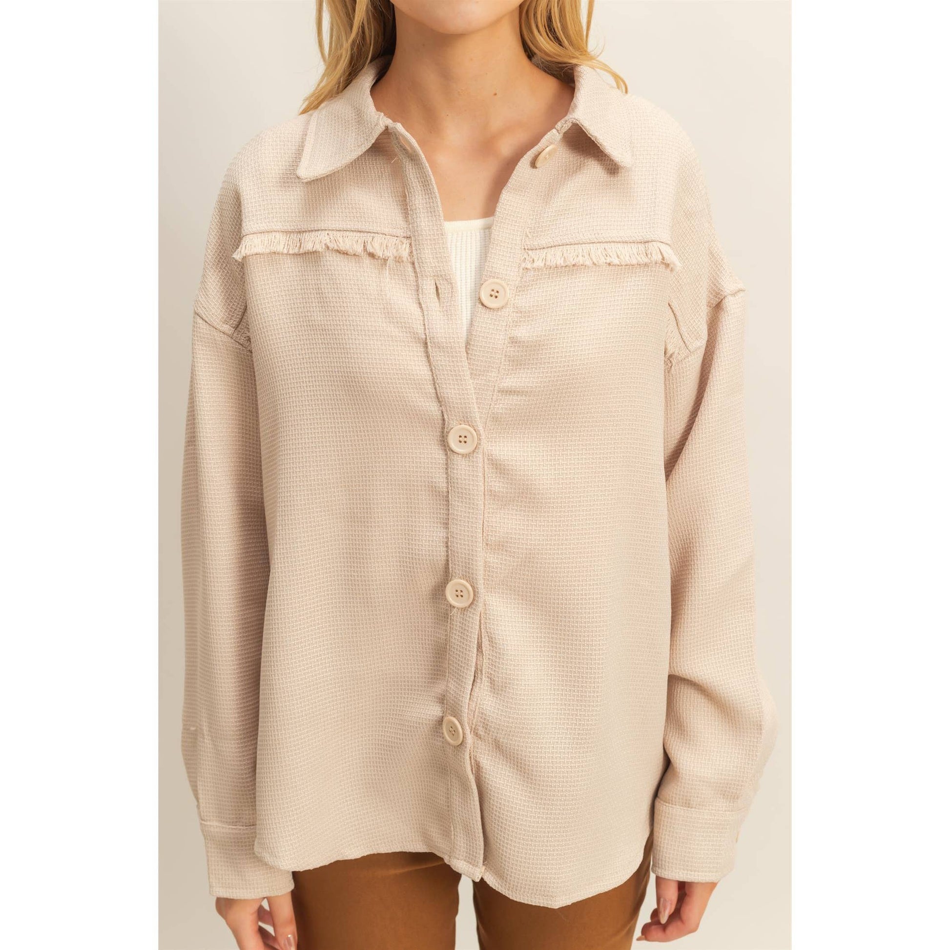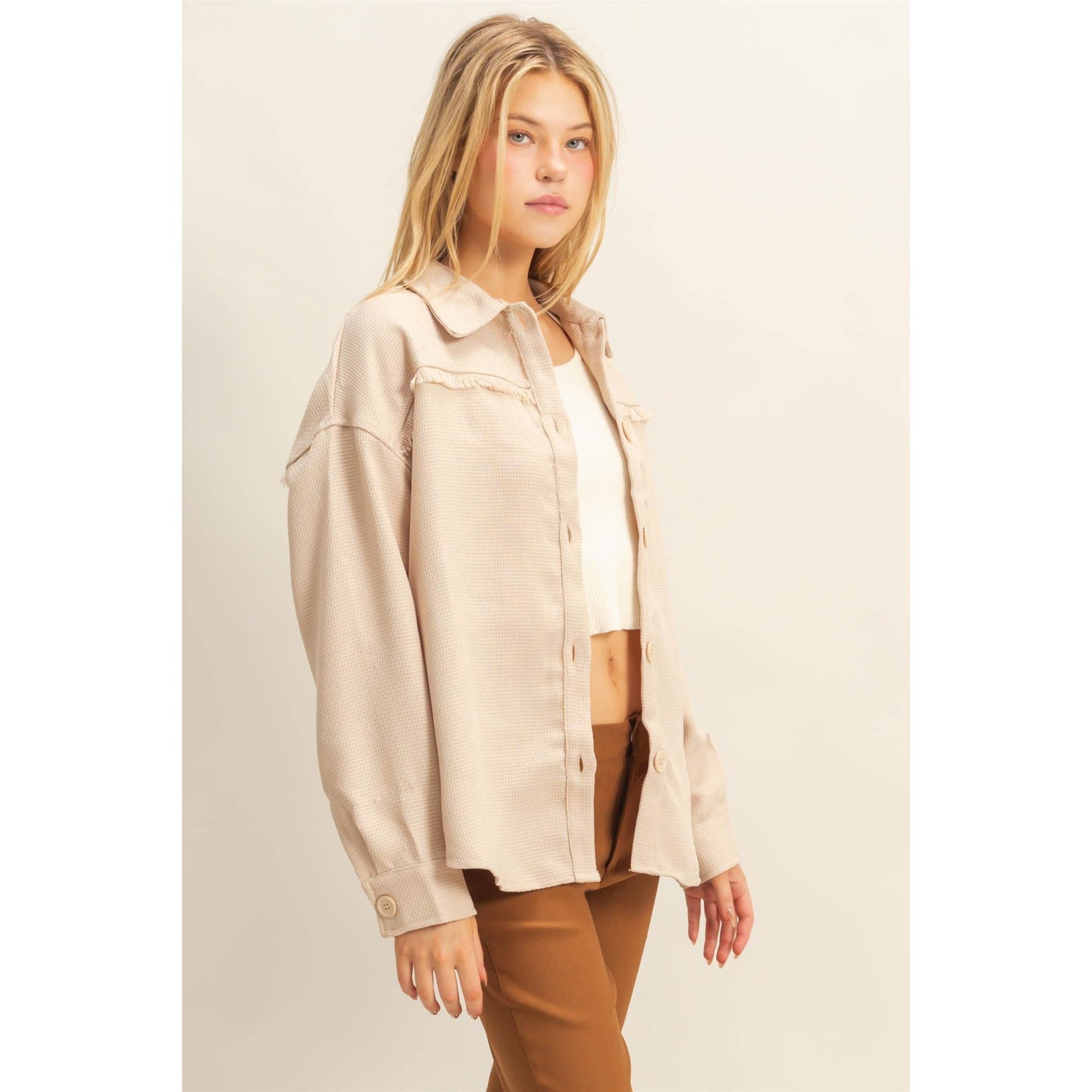 Fray Detail Shacket: BEIGE